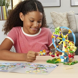 - Konstruktionssæt med bevægelsesfunktion: drej på håndtaget og aktiver pariserhjulets bevægelse.