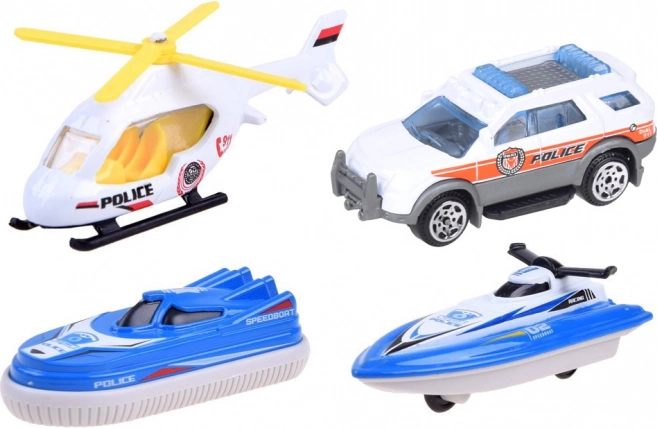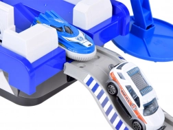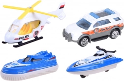Sættet indeholder også en politivan, en vandscooter og et svævefartøj, som nemt kan køres ud via rampen. Takket være frit roterende hjul på køretøjerne og de gennemarbejdede detaljer er legen flydende og sjov. Sættet suppleres af baner til køretøjer, skilte, anker og andet tilbehør til at skabe egne historier.