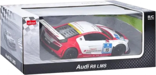 Oplev adrenalinen ved at køre den legendariske model AUDI R8 LMS i skala 1:24. Denne fjernstyrede bil imponerer med realistiske detaljer, præcis udførelse og robust konstruktion. Åbne døre, troværdige proportioner og en kvalitetslak understreger bilens sportslige karakter. Ideel til børn fra 6 år og samlere.