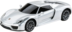 Den sølvfarvede model Porsche 918 Spyder efterligner nøjagtigt det luksuriøse udseende af den ægte bil, inklusive det sportslige design og detaljerede funktioner.