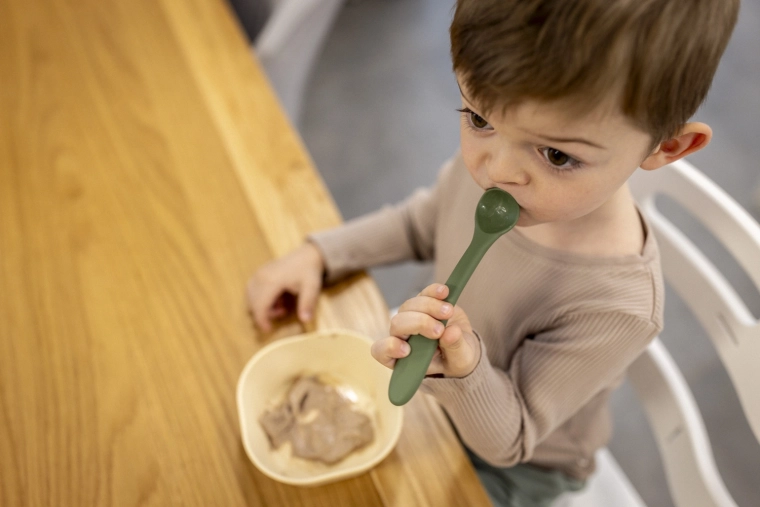 Vores bløde silikoneske er specialdesignet til følsomme børnetandkød og de første tænder, hvilket gør den til et ideelt valg til opstart med skemad. Den ergonomiske form gør fodringen lettere for både forældre og børn, når de lærer at spise selv.