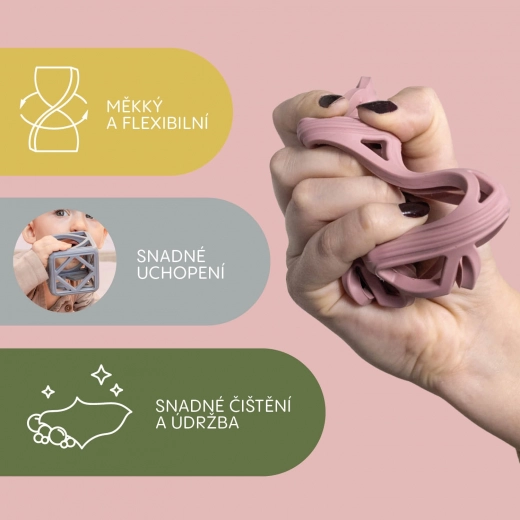 Hjælp din baby gennem den krævende periode med tandfrembrud med den silic one bidering Square. Dens unikke geometriske form ligger perfekt i de små hænder og giver en effektiv massage af tandkødet, som lindrer ubehaget ved tandfrembrud.