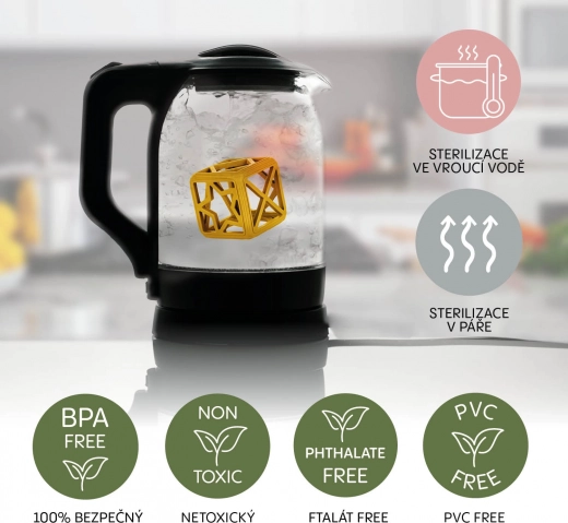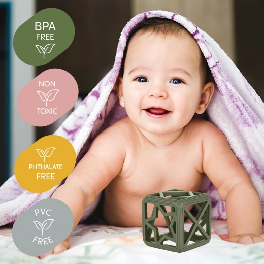 Hjælp din baby gennem den krævende periode med tandfrembrud med silikonebideringen Square. Dens unikke geometriske form ligger perfekt i de små hænder og giver en effektiv massage af gummerne, som lindrer ubehag under tandfrembrud.