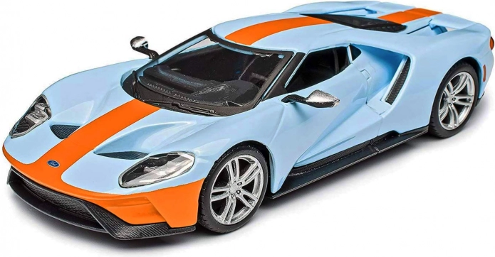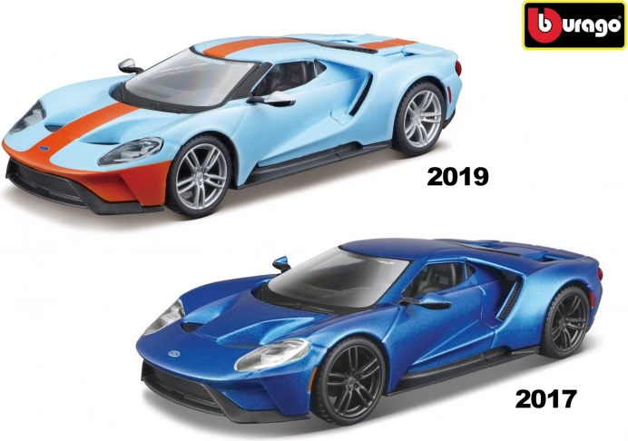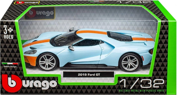 metalmodel bburago ford gt 2019 1:32 lyseblå/orange