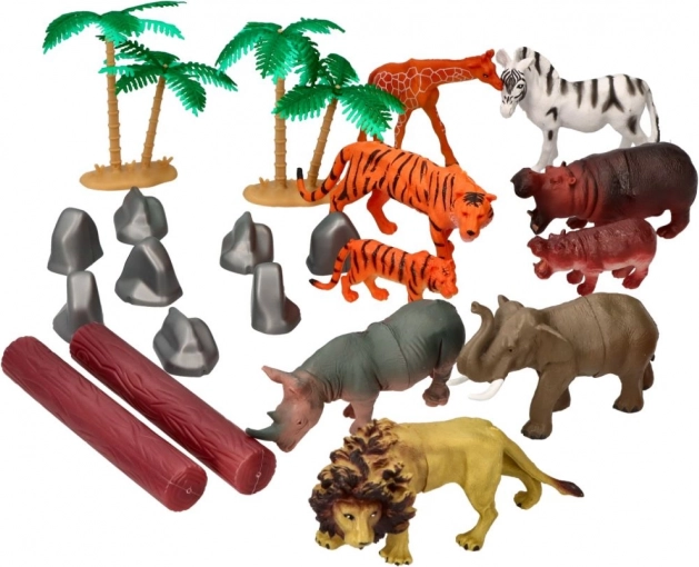 Sæt med safari-figurer og tilbehør, 30 stk.