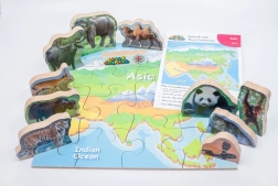 Takket være disse elementer kan børn lære at kende de dyr, der lever på kontinentet, og tilegne sig begreber forbundet med de enkelte verdensdele.