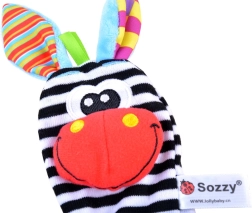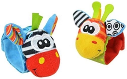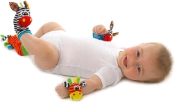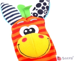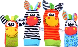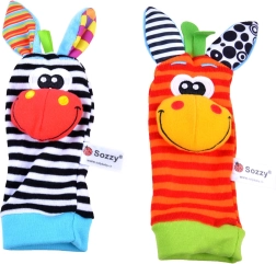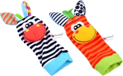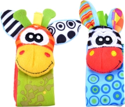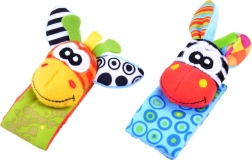 Sokkerne rasler og varmer samtidig, håndledsremmene fastgøres nemt takket være velcro og bliver siddende selv under tumlen. De broderede dyreansigter er helt sikre uden små dele. Legetøjet kan vaskes, så det er let at holde rent – et ideelt valg til hverdagsleg og som gave til nyfødte.