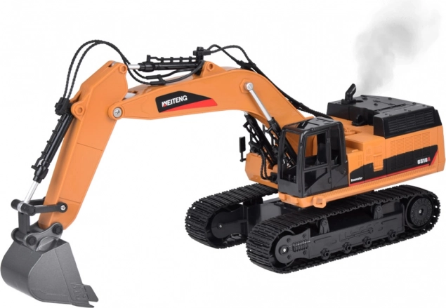 RC bæltegående gravemaskine-legetøj med røg, lyde og LED-lys + fjernbetjening