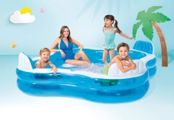 Hvert hjørne af poolen tilbyder et komfortabelt sæde med ryglæn. Slap af, mens børnene leger – alle har deres plads og maksimal komfort.