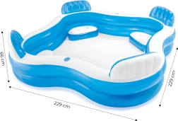 De praktiske 2 kopholdere holder dine forfriskninger lige ved hånden, og aftapningsventilen gør det nemt hurtigt at tømme vandet. Poolen er let at transportere, puster hurtigt op og giver takket være målene 229 × 229 × 69 cm rigelig plads til både afslapning og leg.