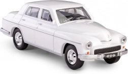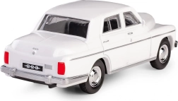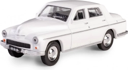 Den hvide Warszawa 223 med detaljerede forkromede elementer og gummidæk indfanger troværdigt karakteren af den legendariske PRL-sedan.
