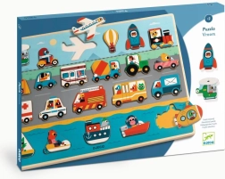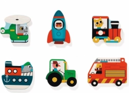 Dette kvalitets træ-indsætningspuslespil med transporttema vil glæde små fans af biler, skibe og fly. Takket være klare farver og robuste træbrikker træner børn greb, tålmodighed og rumlig forståelse. Hver brik har en farvet kontur på pladen, som gør matchningen lettere og støtter selvstændighed.