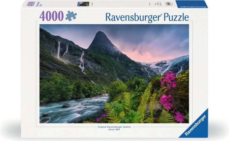 Nyd et storformatmotiv af vild bjergnatur med flod, vandfald og frodig vegetation. RAVENSBURGER er synonymt med præcise udskæringer, holdbare brikker og mættede farver, som gør hver samling til en ægte oplevelse og en smuk vægdekoration.