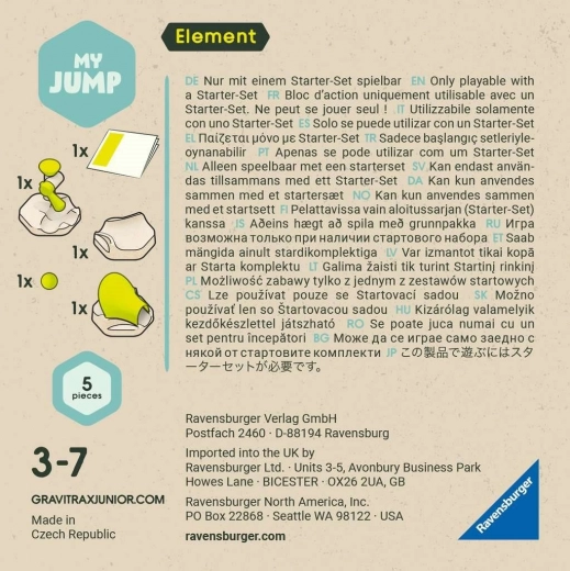 Udvid din GRAVITRAX JUNIOR-kuglebane med det actionfyldte element Hop, som skyder kuglen videre til næste del af banen og sørger for spændende og endeløs underholdning. Ideelt til børn fra 3 år, understøtter kreativitet og logisk tænkning ved opbygning af temaverdener.