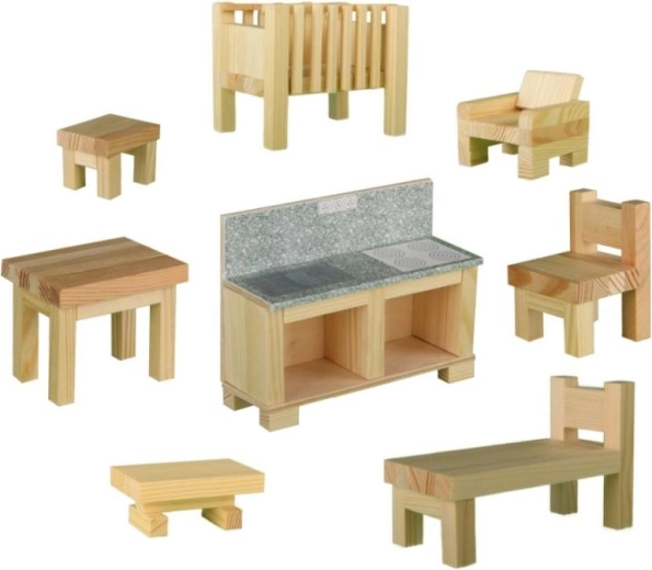 Byg dit eget rum i miniature med vores træbyggesæt til limning. Skab en lænestol, stole, bord eller børneseng takket være præcist fremstillede dele og en nem vejledning.