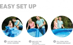 Det oppustelige bassin INTEX Easy Set 305 × 76 cm er et ideelt valg til hurtig sommerafkøling. Pust den øverste ring op, læg bassinet ud på en plan overflade, og på få minutter kan du begynde at fylde vand på. En let sæsonløsning uden krævende montering, som giver god plads til både børn og voksne.