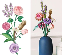 - Illustreret vejledning: Byggesættet indeholder en farverig papirmanual, som gør samlingen let og sjov. At samle buketten er en underholdende aktivitet, der aldrig keder, og den færdige buket kan udstilles som dekoration.