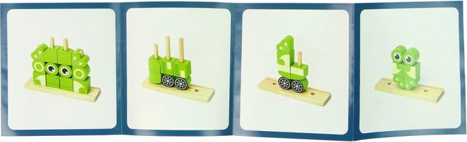 Det kreative træpuslespil formet som en frø er designet til børn for at opmuntre dem til at skabe og lære koordination. Puslespillet indeholder 12 dele, som sættes på en base med pinde, hvilket gør det muligt at lave forskellige dyr eller objekter efter fantasien.