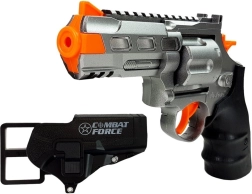 Effekterne aktiveres ved tryk på aftrækkeren og ved genladning. Realistisk sølv-sort finish og sikker udførelse til børns leg.