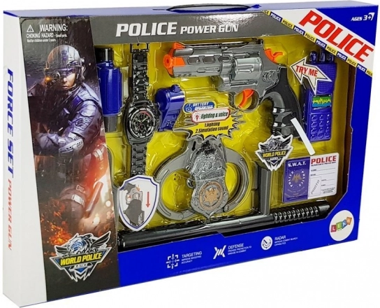 Dette alsidige politisæt er ideelt til udklædning, fastelavn og daglig helteleg. Det realistiske design og det rige indhold understøtter fantasi, rolleleger og samarbejde mellem flere børn. Den elegante sølv-sorte pistol lyser og afgiver skudlyd, når aftrækkeren trykkes ned og ved genladning, hvilket gør legen endnu mere autentisk.
