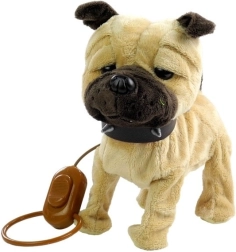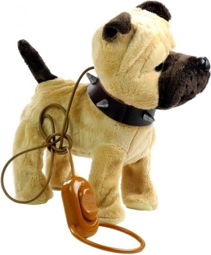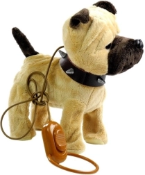 Den interaktive plyshund i beige er det ideelle valg til børn, der drømmer om deres eget kæledyr. Bløde, behagelige og skånsomme materialer er sikre for børns hud, mens realistiske detaljer som mørke øjne og en sjov hale stimulerer fantasien. Med følger et langt snor med en praktisk kontakt, så barnet nemt kan styre hunden.