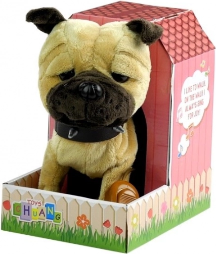 Den søde interaktive hund på snor med hundehus vil glæde ethvert barn. Den er lavet af blødt, ikke-giftigt materiale og kan bevæge sig, danse og synge. Takket være styring via snoren er legen realistisk og sjov, samtidig som børn lærer ansvar og omsorg for et kæledyr. Velegnet fra 3 år, opfylder CE-standarder.