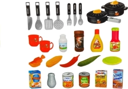 I pakken medfølger et rigt sæt af tilbehør: service, bestik, madvarer og redskaber til alsidig leg. Køkkenet understøtter rolleleg, udvikling af ordforråd og fælles leg.