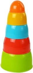 Denne farverige skål-pyramide giver børn mulighed for at bygge tårne, lægge skålene i hinanden og sortere efter størrelse eller farve. Legen udvikler naturligt fingerfærdighed, greb og hånd-øje-koordination og lærer samtidig forståelse for størrelsesforhold.