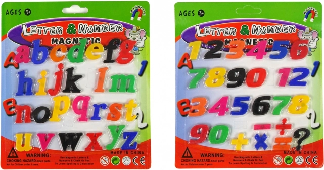 Farvede magnetiske bogstaver og tal hjælper børn med at danne deres første ord og øve grundlæggende regnearter.