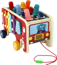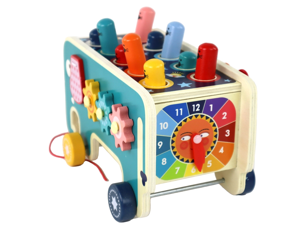 Sættet er komplet og indeholder en lille bil med træksnor, 2 hammerer til "Whac-a-Mole" samt en bækkenkølle. Legetøjet er desuden fremstillet af sundhedsvenligt træ, hvilket sikrer holdbarhed og sikkerhed for børn.