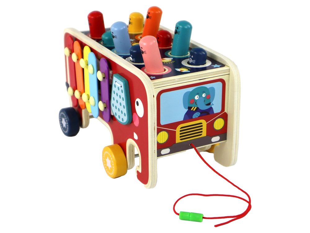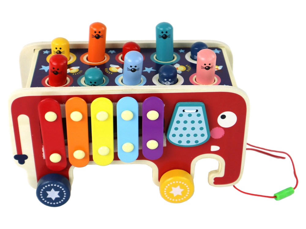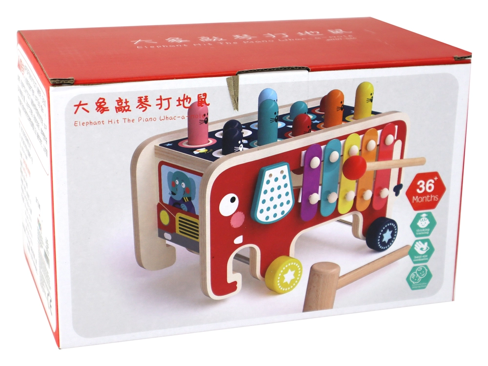 Sættet består af en lille træbil med elefantmotiv, som fanger de mindste spilleres opmærksomhed. På bilens tag er der farvede hoveder af dyr fra undergrunden, som bliver målet i "Whac-a-Mole"-spillet. Børn forsøger at ramme dem med de medfølgende hammerer og udvikler dermed deres fingerfærdighed og motoriske koordination.