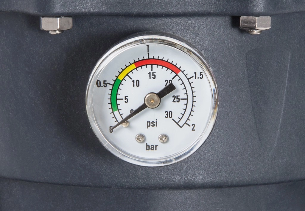 Let betjening sikres af en 6-vejs ventil til filtrering/skyl/tilbageskyl/recirkulation/tømning/lukket samt en indbygget timer til automatisk drift. Den robuste tank er designet til lang levetid, og manometeret hjælper med at bestemme det ideelle tidspunkt for tilbageskylning af sandet.