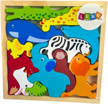 Sjovt og lærerigt træpuslespil med dyr til børn fra 3 år. Under legen træner børn logisk tænkning, finmotorik og øje–hånd-koordination. Farverige brikker i forskellige former motiverer til at opdage og lære gennem leg.