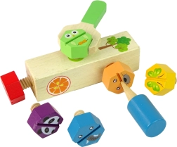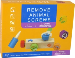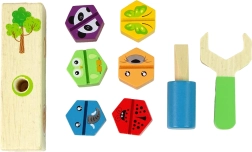 Et sjovt trælegetøj til små gør-det-selv-børn, der udvikler finmotorik, logisk tænkning og kreativitet. Med nøgle og skruetrækker kan børn skrue i og skrue ud farverige skruer med dyremotiver, træne greb og øje–hånd-koordination. Alt er lavet af kvalitetstræ og malet med ikke-giftige farver.