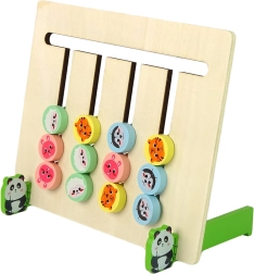 Pladen er dobbeltsidet, så spillet kan varieres efter den valgte opgave. Panda-stativerne holder pladen lodret for bedre håndtering.