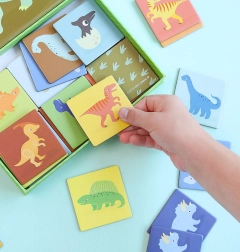Styrk hukommelsen og spil med dine børn med dette sjove pexeso-sæt med dinosaurer. Velegnet spil til 2 eller flere spillere, hvor målet er at finde så mange par som muligt: