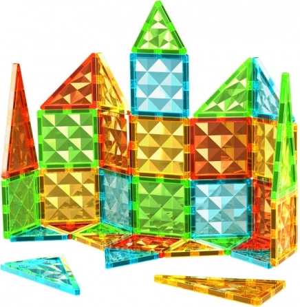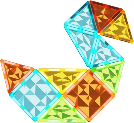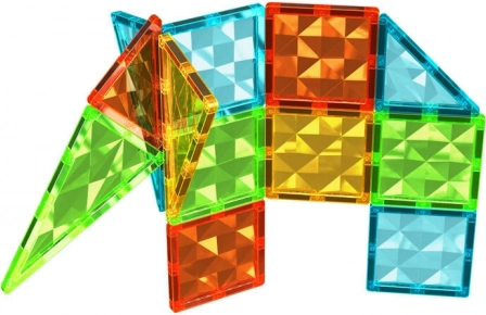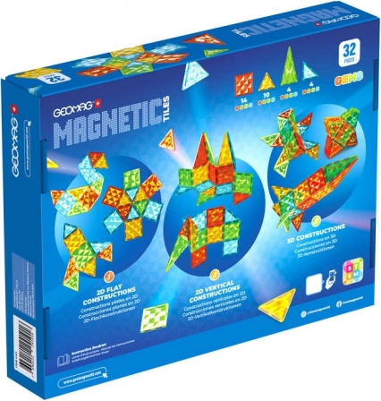 Geomag Gems underholder ikke kun børn, men lærer dem også og introducerer dem på en attraktiv og fængende måde til videnskabens og byggeriets verden. Geomag Gems 32 er et sæt magnetiske fliser, designet til at udvikle kreativitet, finmotorik og rumlig forestillingsevne hos børn fra 3 år. De farverige plader i form af kvadrater og trekanter, dekoreret med en iøjnefaldende blank struktur, opfordrer til at skabe konstruktioner fulde af glans. Takket være den lette sammenkobling med magneter kan barnet bygge rumlige figurer som tårne, huse eller andre fantasifulde konstruktioner. Legetøjet understøtter udviklingen af kreativ tænkning og motoriske færdigheder og giver børn mulighed for naturligt at eksperimentere med principperne for geometri og balance.