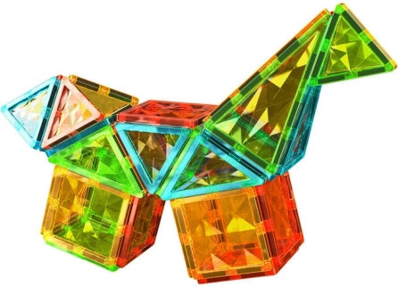 Gennemsigtige, farverige fliser indbyder til eksperimenter. De udvikler rumlig tænkning, kreativitet og gør det muligt at bygge stadig nye 3D-modeller.