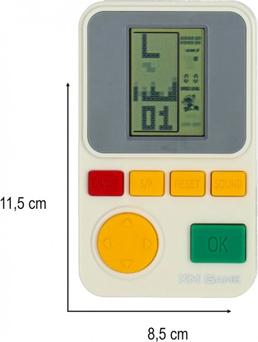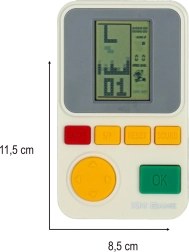 Denne bærbare minikonsol bringer det populære spil med faldende klodser i et enkelt og robust design. Takket være de kompakte mål passer den nemt i lommen eller rygsækken og er klar til sjov når som helst og hvor som helst.