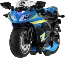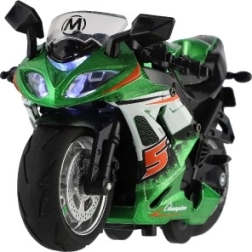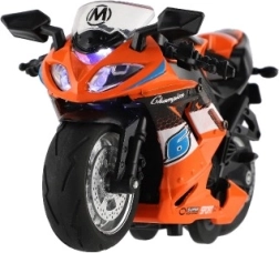 Bliv imponeret af lydeffekterne og de strålende lys, som øger denne legetøjs autencitet. Med tilbagevendende trækfunktion kan du se motorcyklen suse fremad fuld af energi.