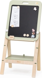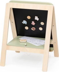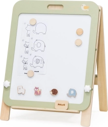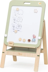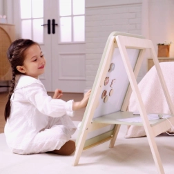 PolarB træ-tavlen er et fantastisk redskab for små kunstnere, der understøtter deres kreative leg og finmotoriske udvikling. Tavlen har to sider – en klassisk sort kridttavle og en hvid magnetisk whiteboard-overflade. Takket være den justerbare højde tilpasser den sig barnets vækst og sikrer behagelig leg i forskellige udviklingsfaser.