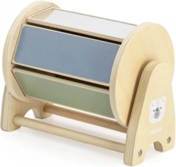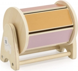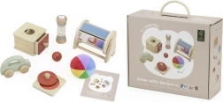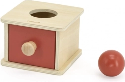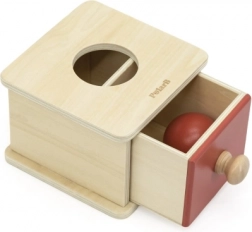 En træboks med skuffe og bold lærer barnet, at genstande eksisterer, selv om de er ude af syne. Understøtter koncentration, tålmodighed og de første logiske sammenhænge ved indsættelse og genfinding.