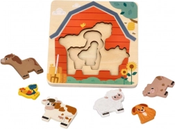 Oplev bondegårdens magi med et lagdelt træpuslespil, ideelt til små opdagere fra 18 måneder. Børn lægger de enkelte dyr i de rigtige former, træner logisk tænkning og øver øje–hånd-koordination. Tydelige konturer og mættede farver gør puslespillet let at arbejde med, og læringen bliver naturligt legende.