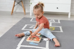 At lægge brikkerne i de matchende udskæringer styrker fingre, øje–hånd-koordination og tålmodighed. Ideelt til små hænder fra 18 måneder.