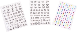 - 7× pen/lak med tynd spids og pensel, 4× glitter, klistermærker (konturer og farvede prikker), dekorative sten/klistermærker, 2× tåseparator, neglefil formet som hjerte, mini negle-tørreapparat