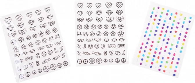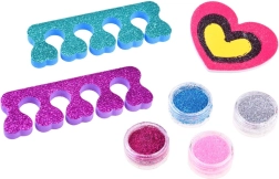I pakken finder du alt til legende manikure og pedikure: 7 markante farver, 4 typer glitter, klistermærker med konturer og farvede prikker, neglefil formet som et hjerte samt bløde separatorer til bekvem lakering af tæerne. Der skal blot en smule fantasi til, så neglene er anderledes hver gang.
