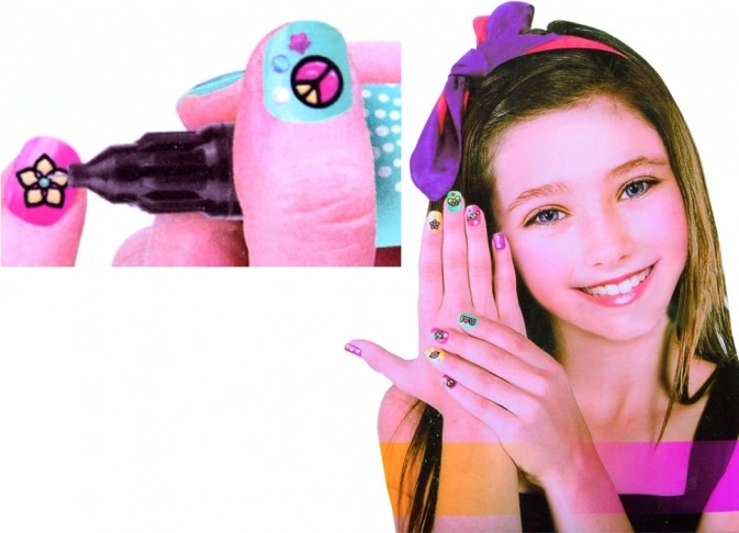 - Komplet udstyr: penne/lakker, klistermærker, glitter, separatorer, neglefil, mini tørreapparat