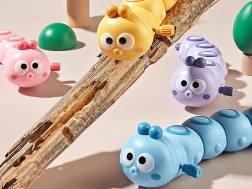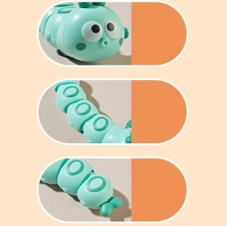 Denne søde larve med optræk bevæger sig fremad og bølger rytmisk efter et enkelt vrid, hvilket naturligt lokker børn til at kravle, trippe og lege sammen. De tydelige farver og de store øjne gør den visuelt attraktiv og hjælper børn med at fastholde fokus.