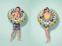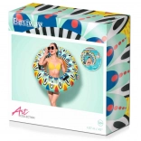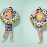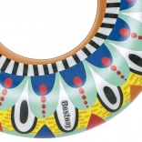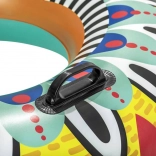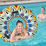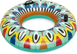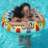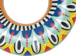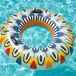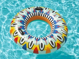 Baderingen Fiesta bringer stil og glæde tilbage i poolen med sin livlige grafik og farverige design. Med en diameter på 107 cm og to sorte håndtag for nemt greb sikrer den sikkerhed for børn fra 12 år og voksne. Den integrerede sikkerhedsventil gør det nemt at puste op og tømme, så opbevaring er en leg.
