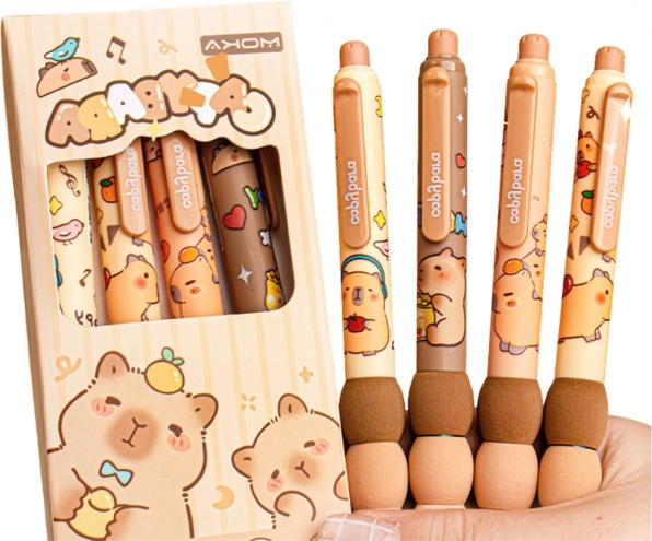 .Hver pen er omhyggeligt designet, og den elegante finish samt det venlige capybara-motiv giver dem en unik karakter. Takket være den ergonomiske form og det behagelige greb ligger pennene perfekt i hånden, hvilket gør dem ideelle til lange skriverier, skitsering eller notatskrivning.